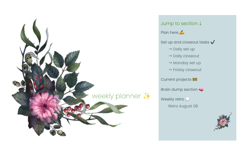 - a "brain dump" section where you can keep notes, thoughts, or anything else