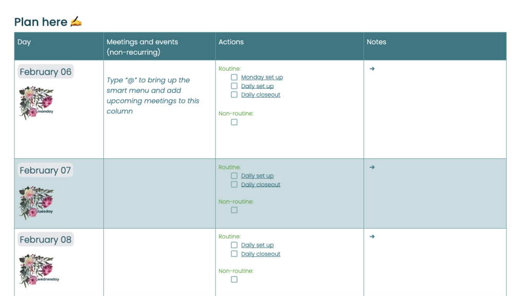 weekly work planner